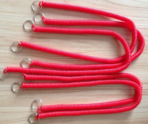 Long spring coiled lanyard chain w/2pcs small split rings end red color simple tool leash